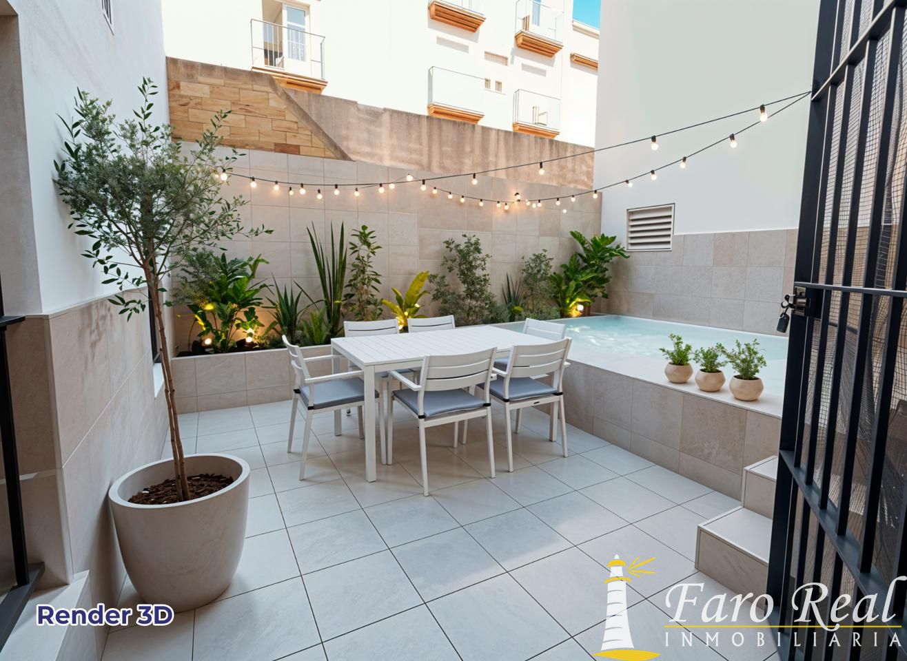 - 2 patios: uno con salida desde el salón y otro con salida desde la cocina.