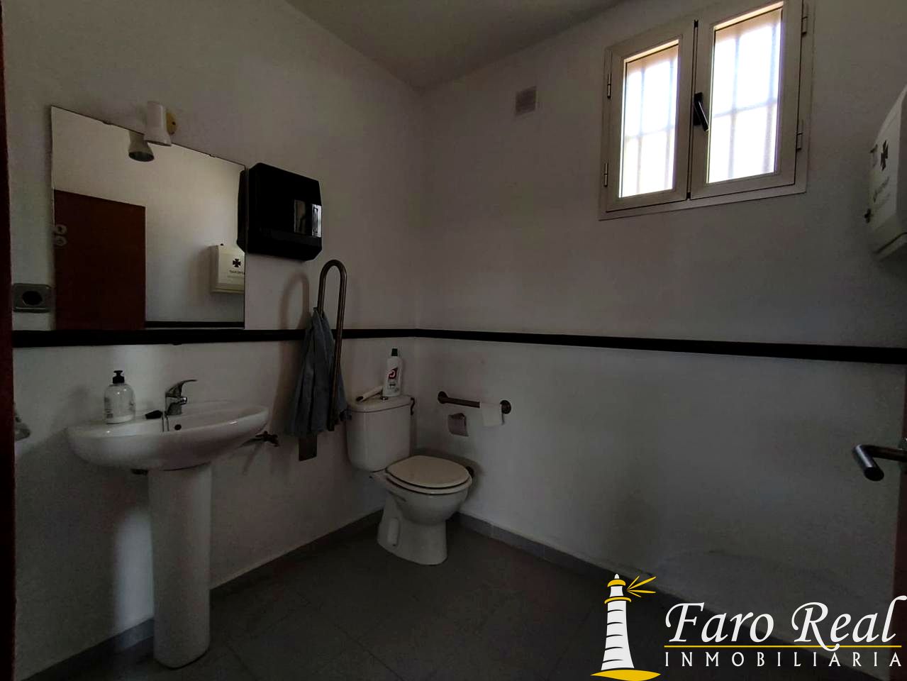 Dos baños en la zona de almacenamiento, uno de ellos adaptado para personas con movilidad reducida, y un tercer baño en la planta alta de oficinas.